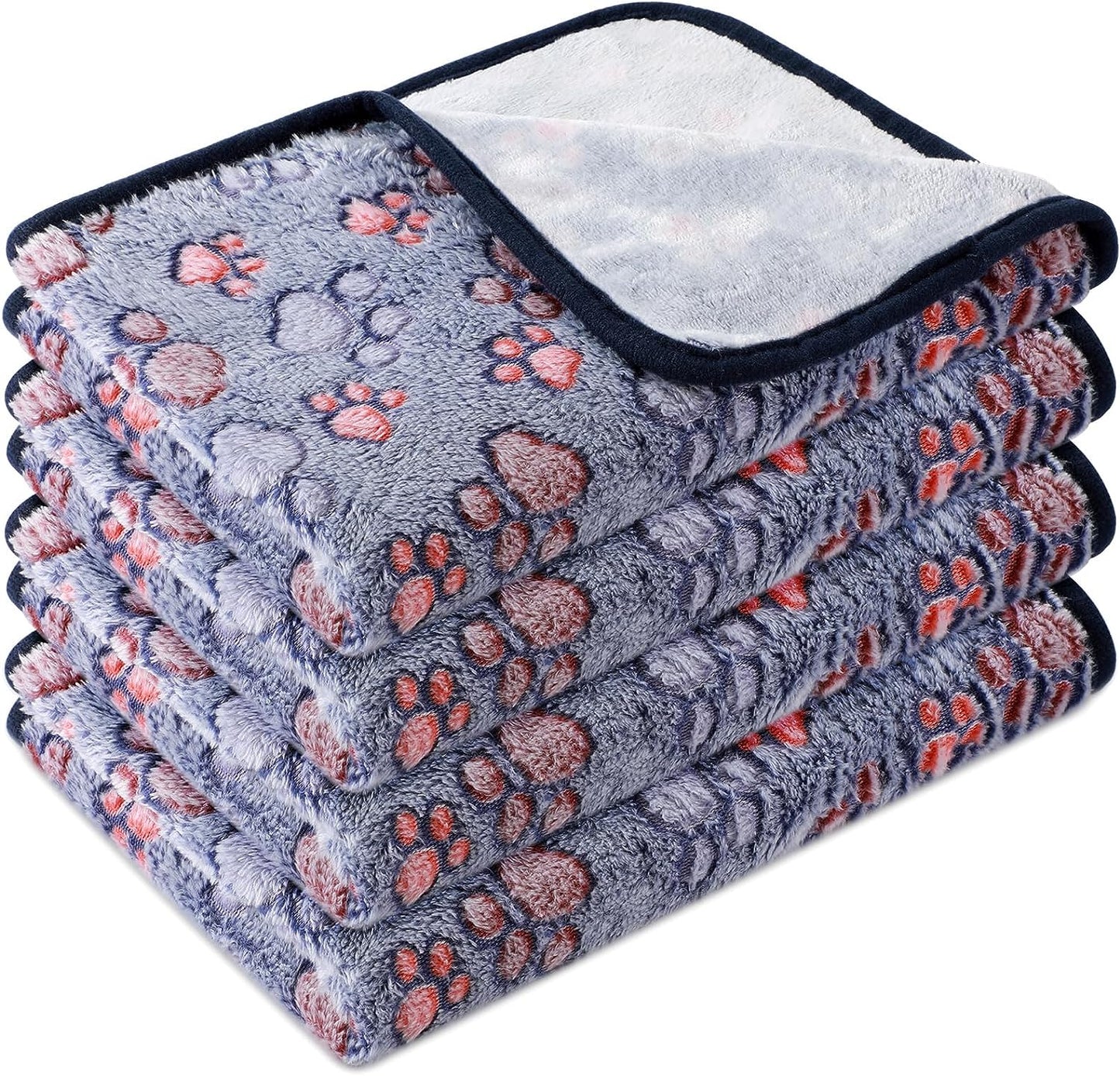 4 Pcs Pet Blanket Dog Puppy Blanket Paw Print Fleece Blanket for Small Medium Pet Dog Cat Warm Soft Sleep Mat Guinea Pig Cage Liners Blanket (Blue,Small)