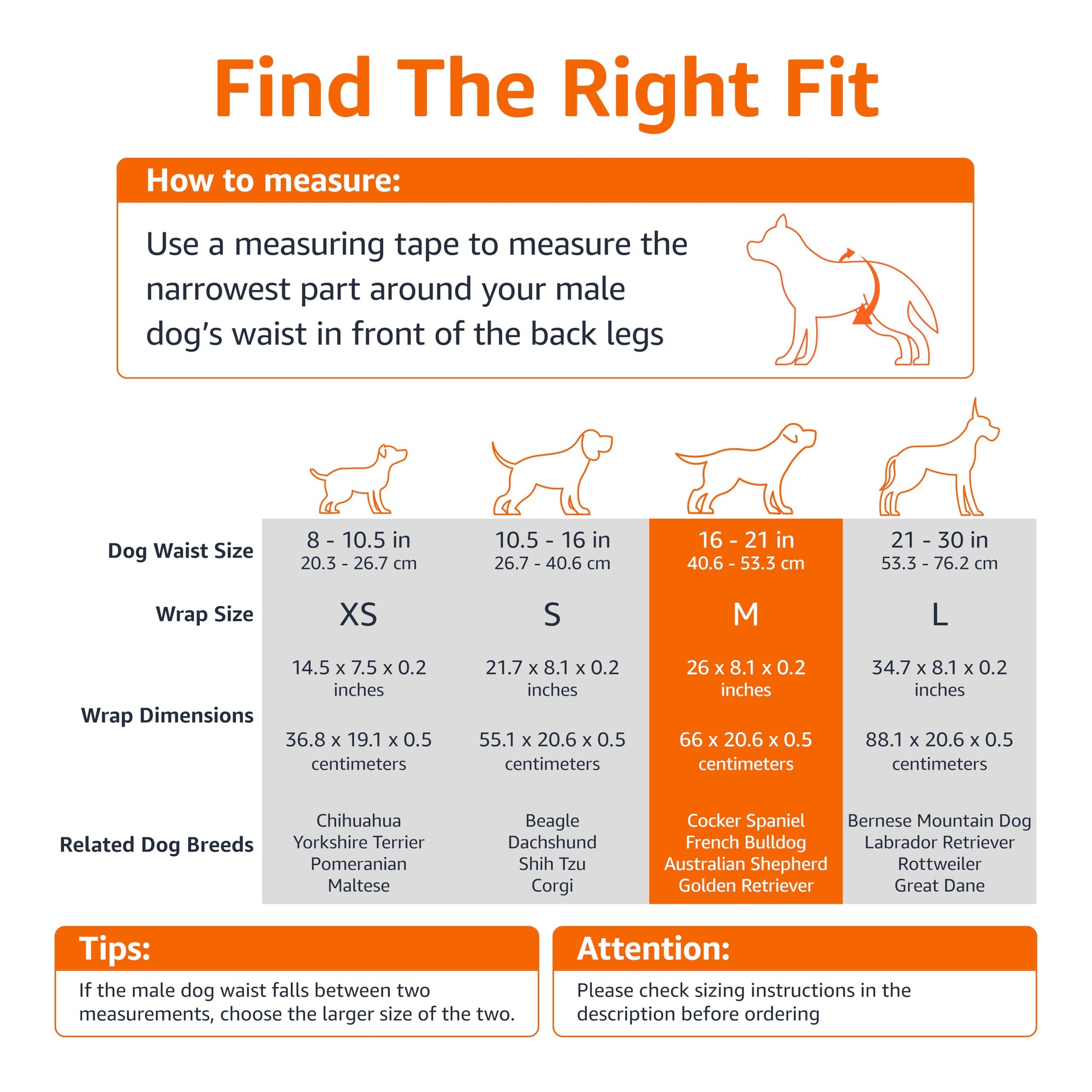 • 30-pack of medium disposable wraps for male dogs with an 14.0 to 15.6 inch waist