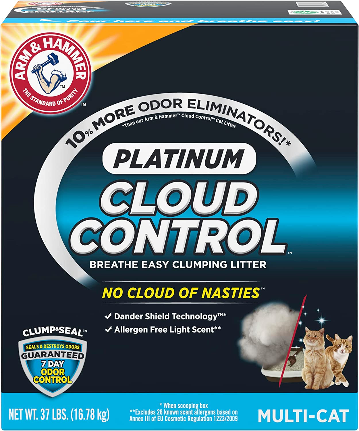 Arm & Hammer Cloud Control Platinum Multi-Cat Clumping Cat Litter with Hypoallergenic Light Scent, 14 Days of Odor Control, 18 Lbs, Online Exclusive Formula