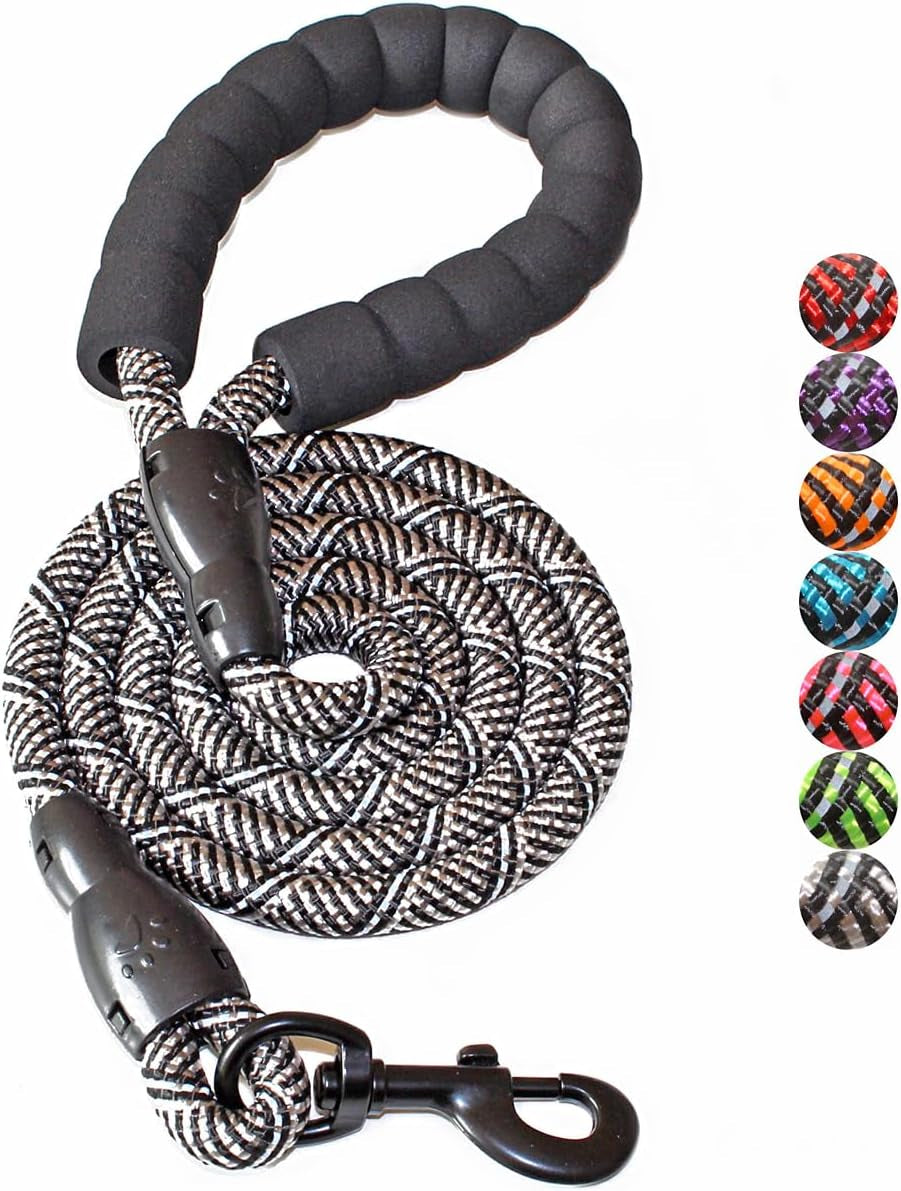 BAAPET 2/4/5/6 FT Dog Leash with Comfortable Padded Handle and Highly Reflective Threads for Small Medium and Large Dogs (5FT-1/2'', Black Silver)