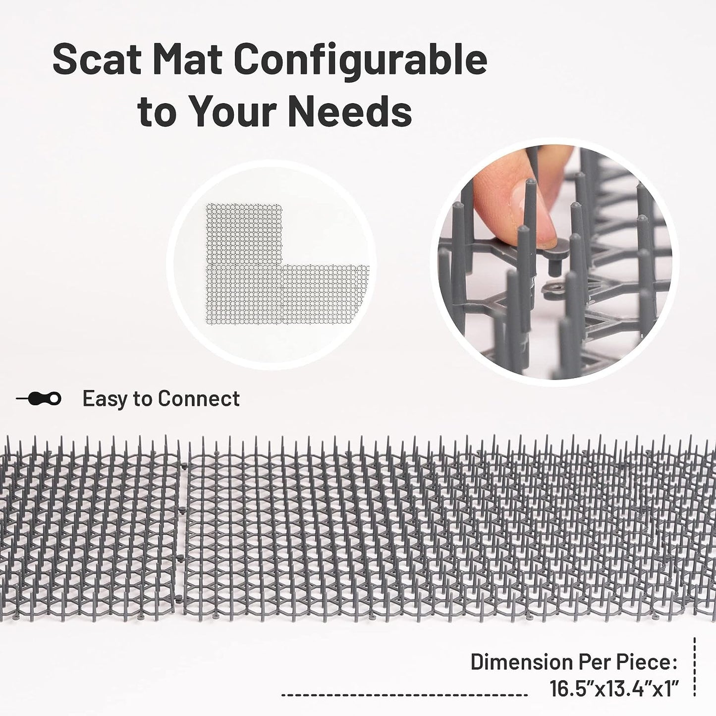 Cat Deterrent Scat Mat for Cats - Cat Spike Mat (Set of 10, Grey) 16.5 X 13.4 Inch with 1 Inch Spikes Is a Perfect Cat Repellent Indoor & Outdoor for All Seasons
