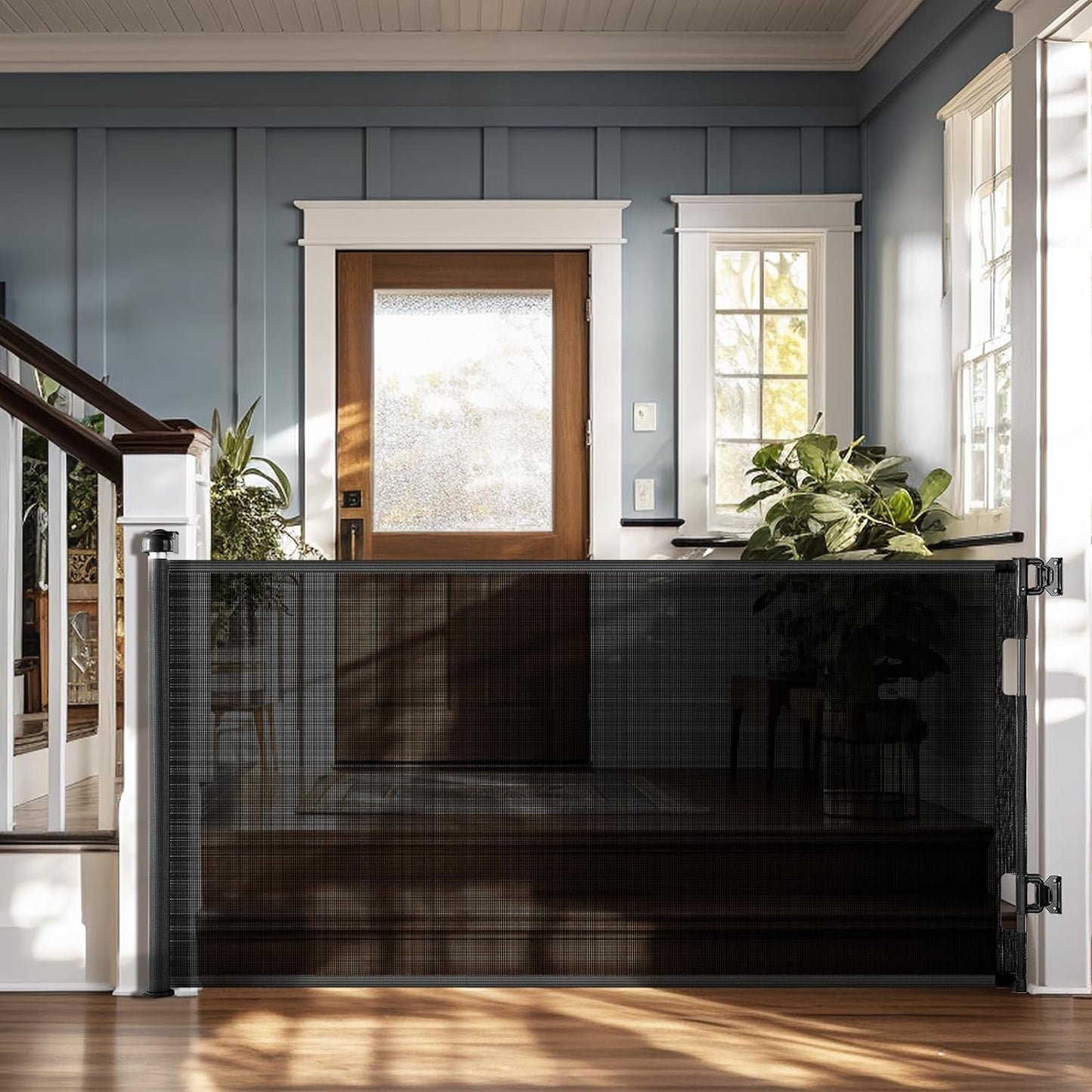 Cumbor Retractable Baby Gates for Stairs 33" Tall, Extends to 76", Extra Wide Mesh Dog Gates for the House, Long Baby Safety Gates for Doorways, Hallways, Porch, Indoor/Outdoor Pet & Child Gate(Black)