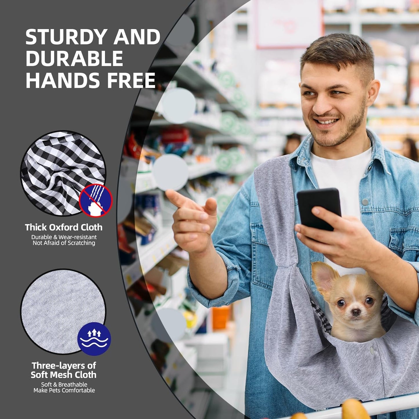 Dog Carrier Sling - Reversible Puppy Carrier Purse with Storage Pocket, Hand-Free Dog Sling Carrier for Carry Small Dogs and Cats,Travel Safety Harness, Dog and Cat Harness (Gray)