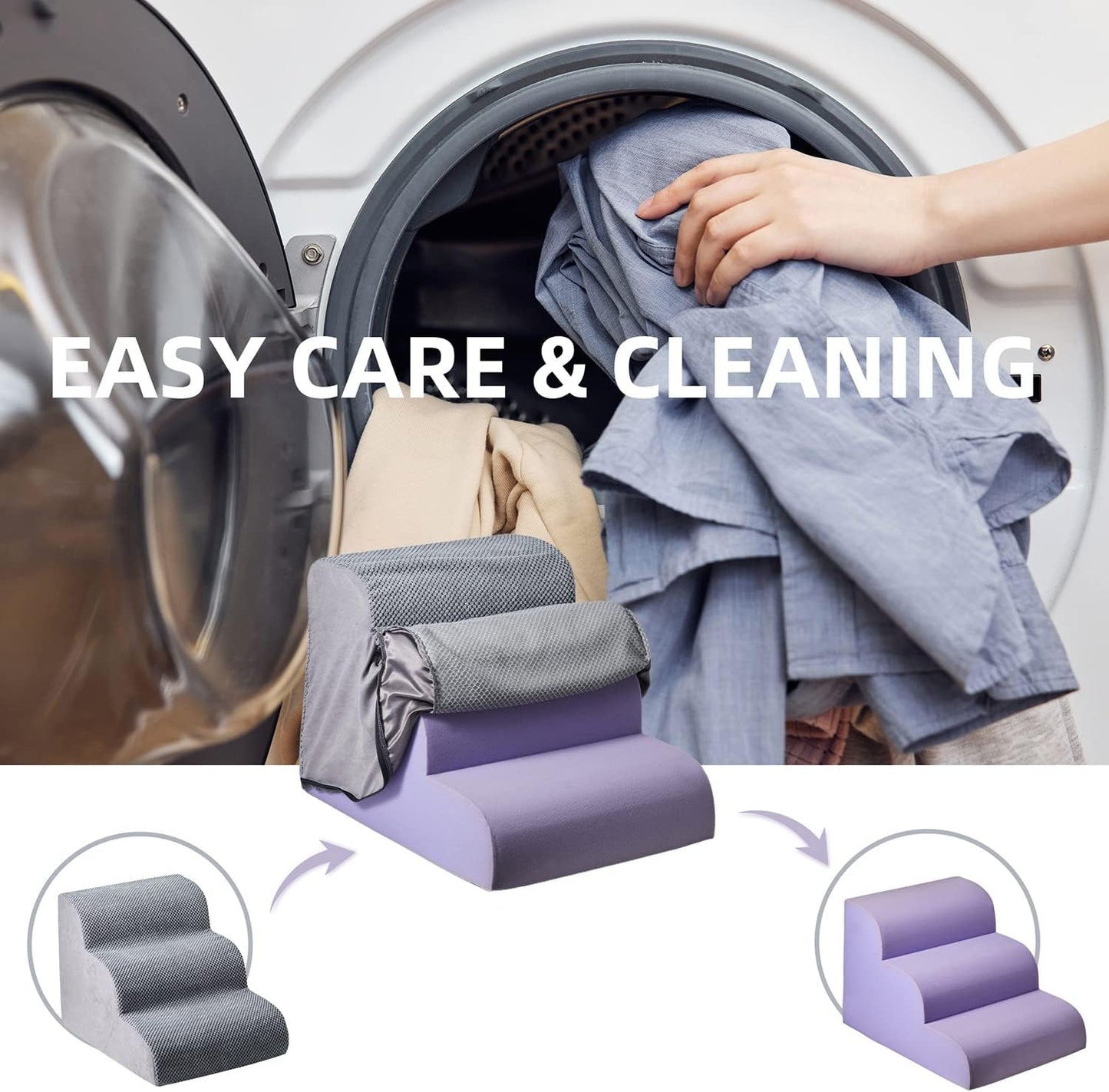 • Easy to Clean:Keep Your Dog Stairs Clean with a Soft, Removable Gray Cover: Perfect for Dog Stairs for High Beds, the Machine Washable Cover Ensures Hygiene and Easy Cleaning