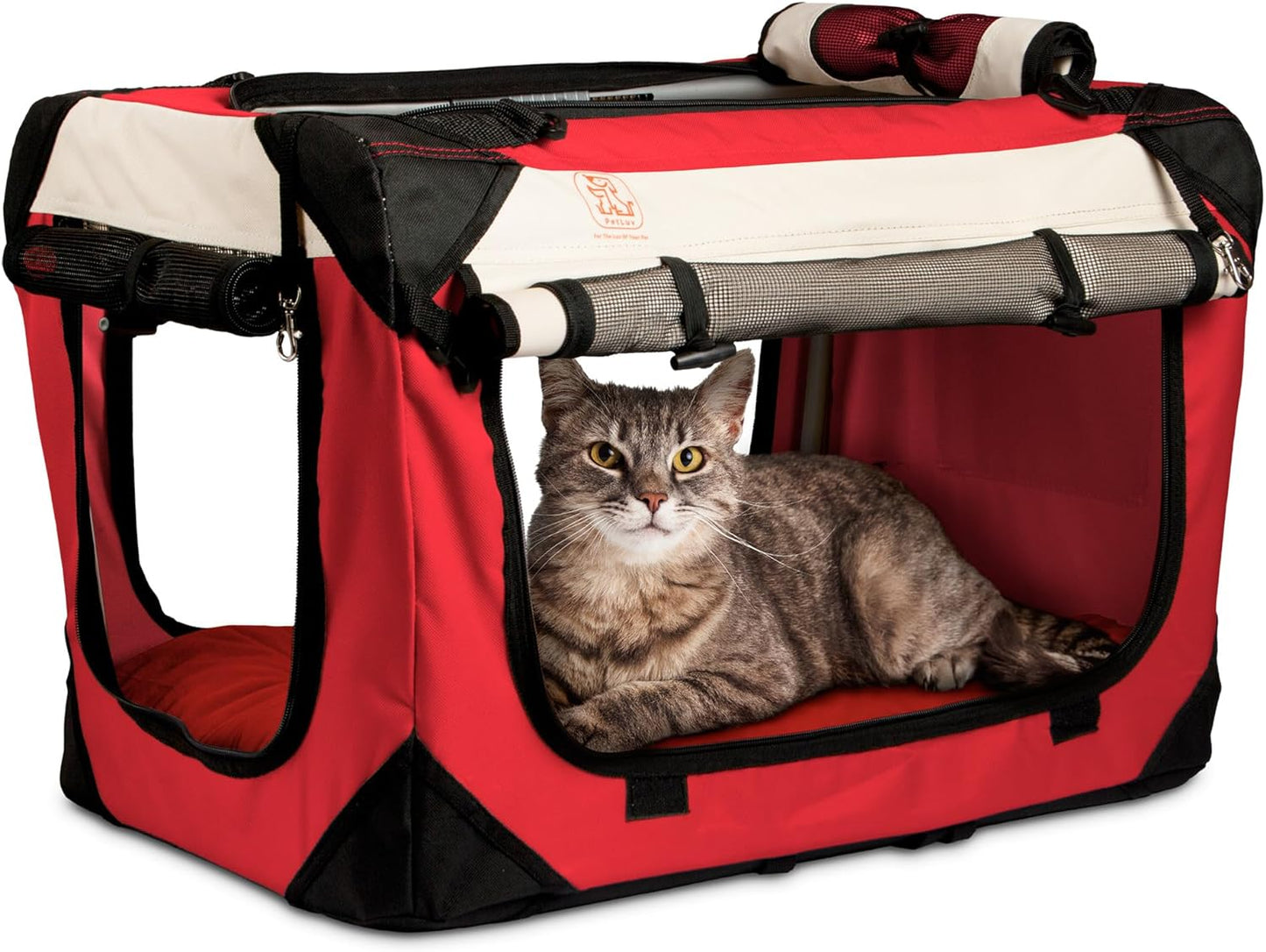 • Luxurious Comfort: Our Pet crate comes with a removable, washable super soft cushioned bed inside, vented windows that roll down for privacy, and plenty of space to stretch out. Creating a plush and inviting space for your cats and medium dog to relax during the journey.