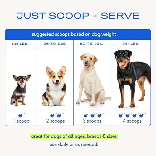 - TASTY & EASY DAILY FOOD TOPPER - Dog food supplements designed as a simple powder you can sprinkle over meals. This dog food supplement topper works with any diet and makes daily use stress-free. Please Note: Packaging may vary due to design changes. Contents remain unchanged in quality and ingredients.