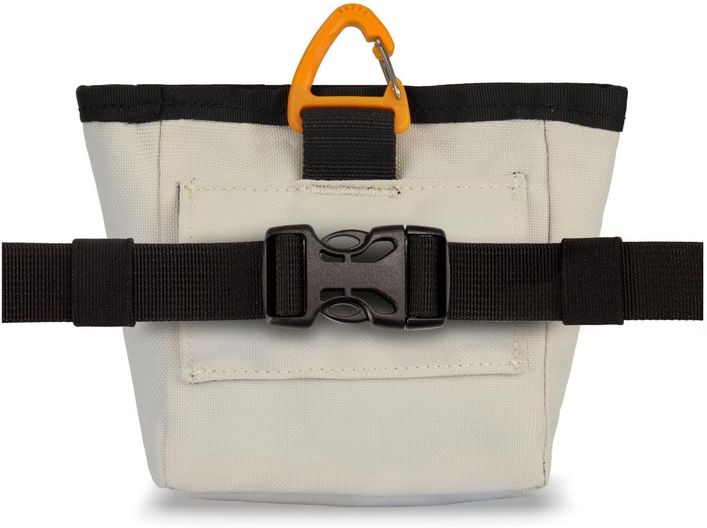 It’s the dog training essential for all the good pups! Grab a treat quickly from this small but spacious pouch when your dog minds their manners, or just because! Made with recycled materials, this water-resistant pouch easily straps around your waist or clips anywhere with ease.