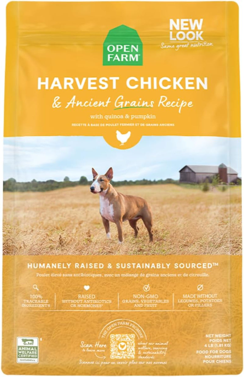 Open Farm Ancient Grains Dry Dog Food, Humanely Raised Meat Recipe with Wholesome Grains and No Artificial Flavors or Preservatives (Harvest Chicken Ancient Grain, 11 Pound (Pack of 1))