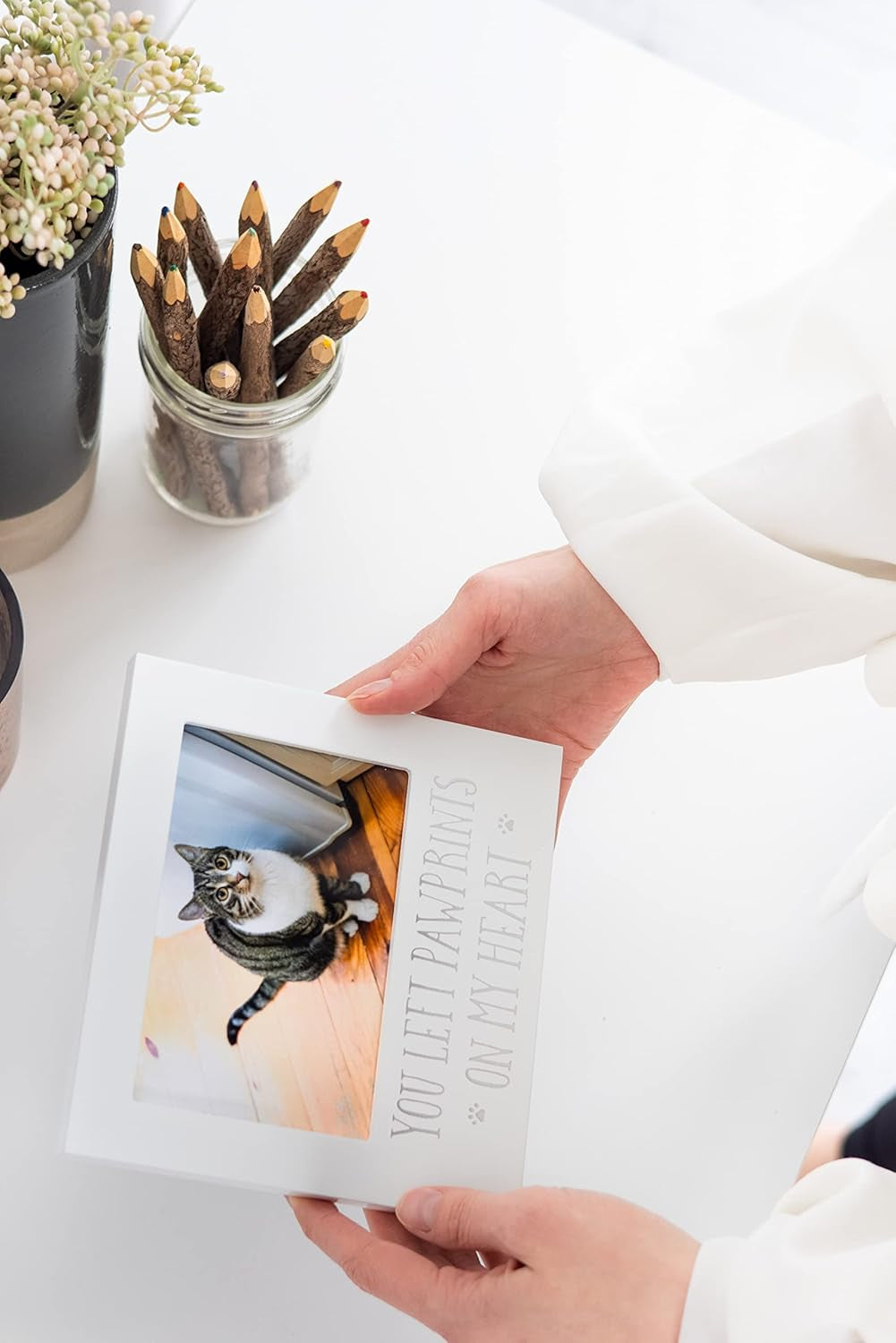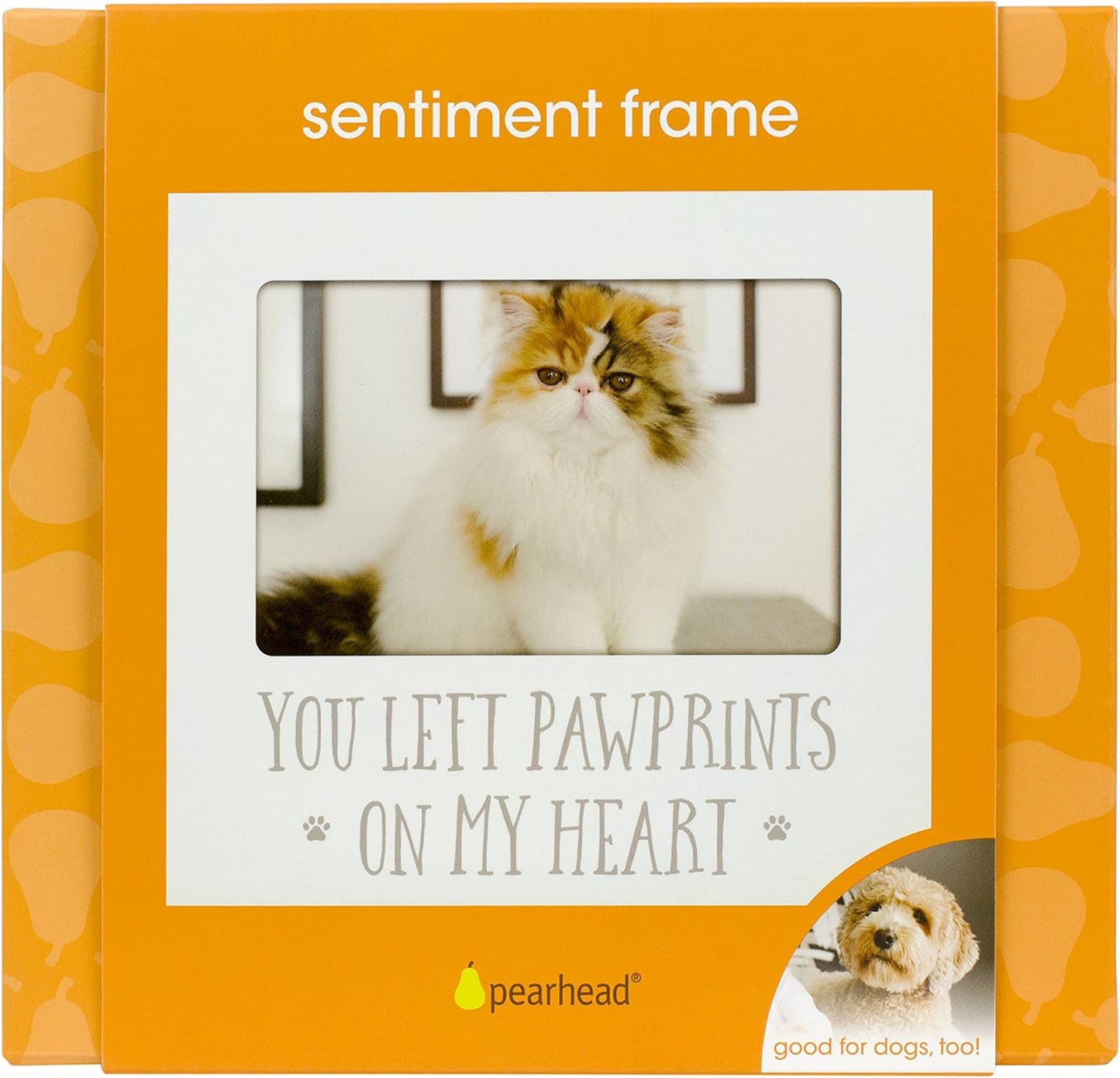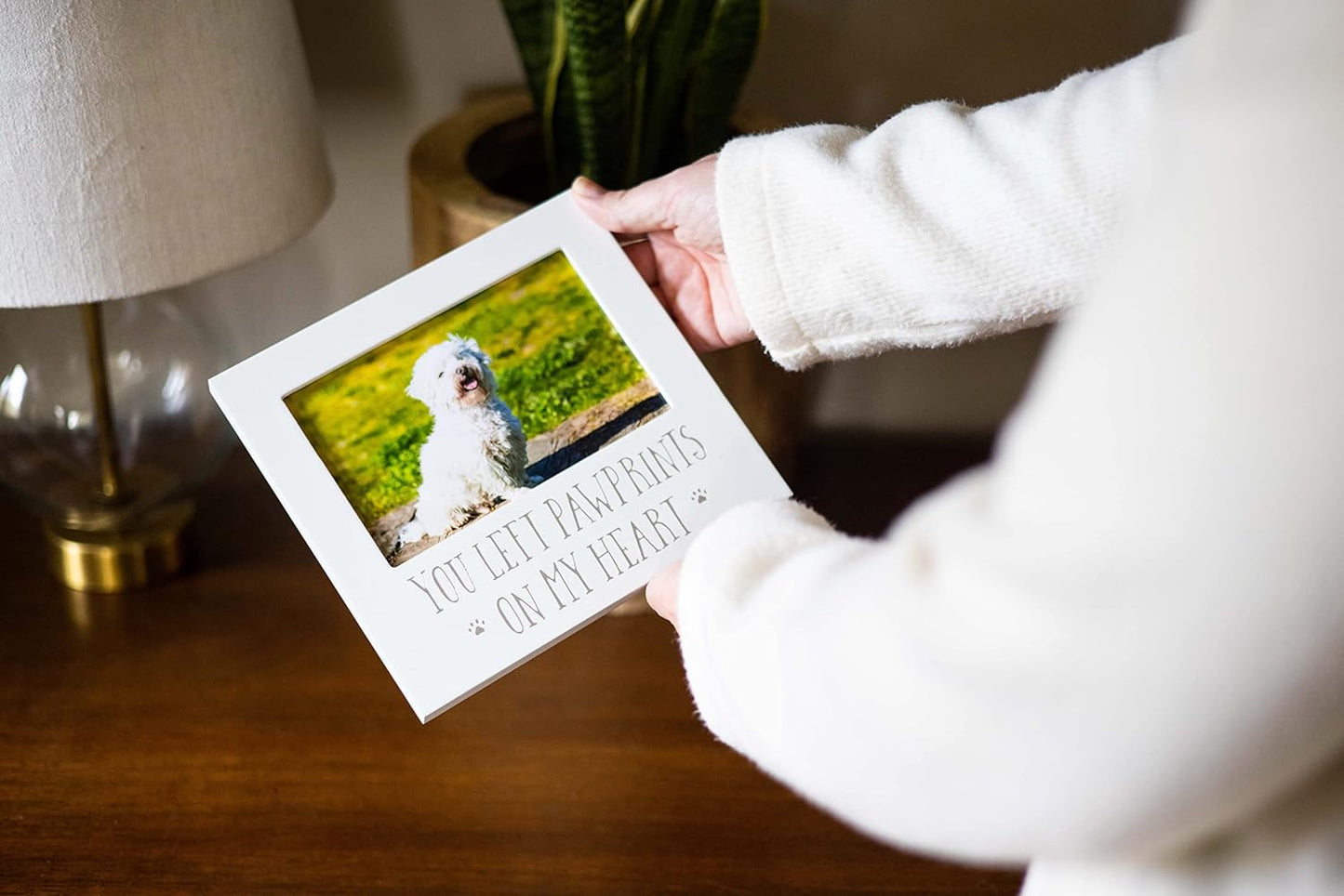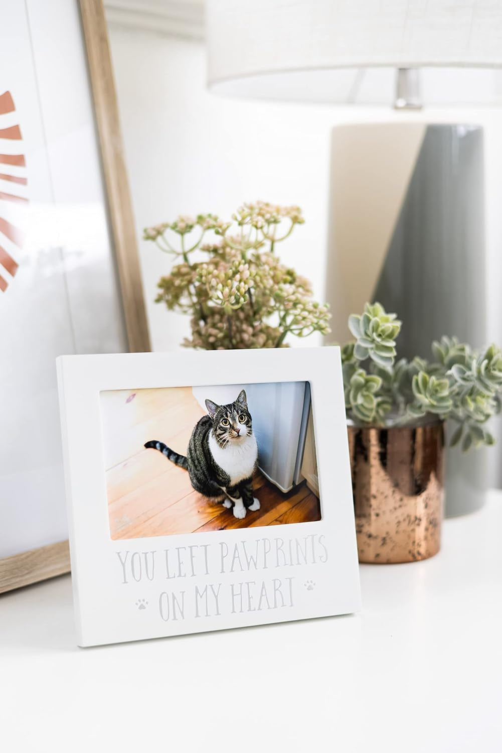 Pearhead You Left Pawprints on My Heart Pet Keepsake Picture Frame, Dog or Cat Photo Frame for Pet Owners, Pet Memorial Frame, 4X6 Photo Insert, Sympathy Gift, White