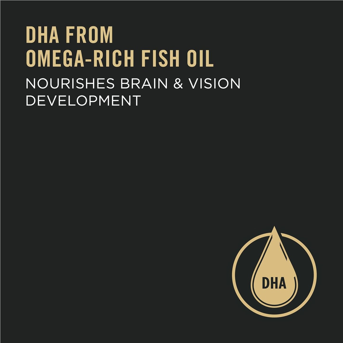 • DHA from omega-rich fish oil nourishes brain and vision development