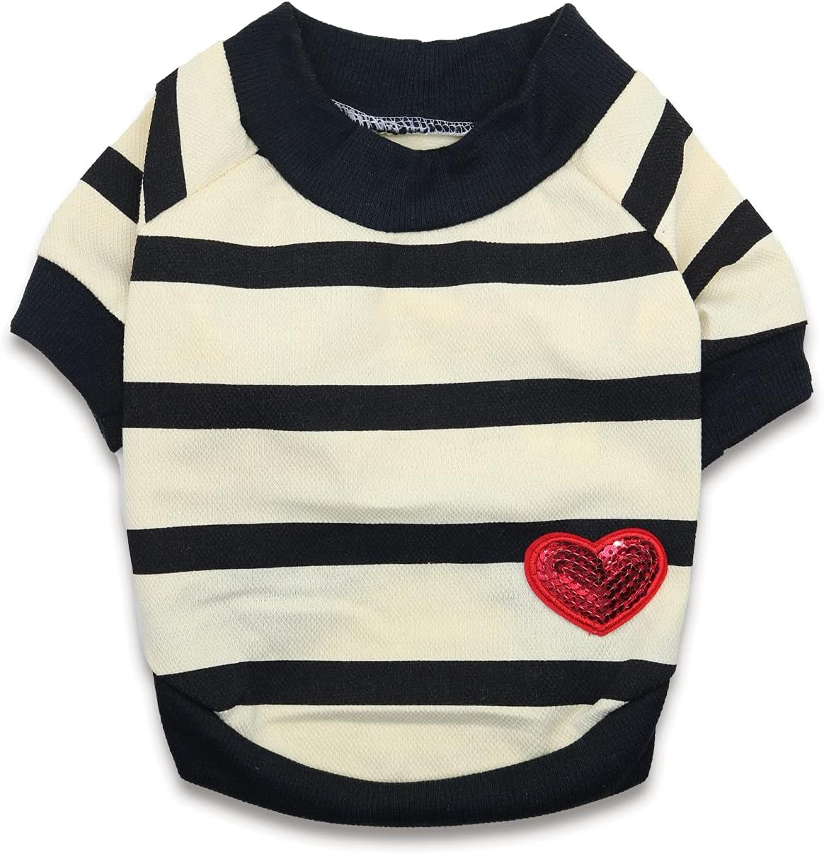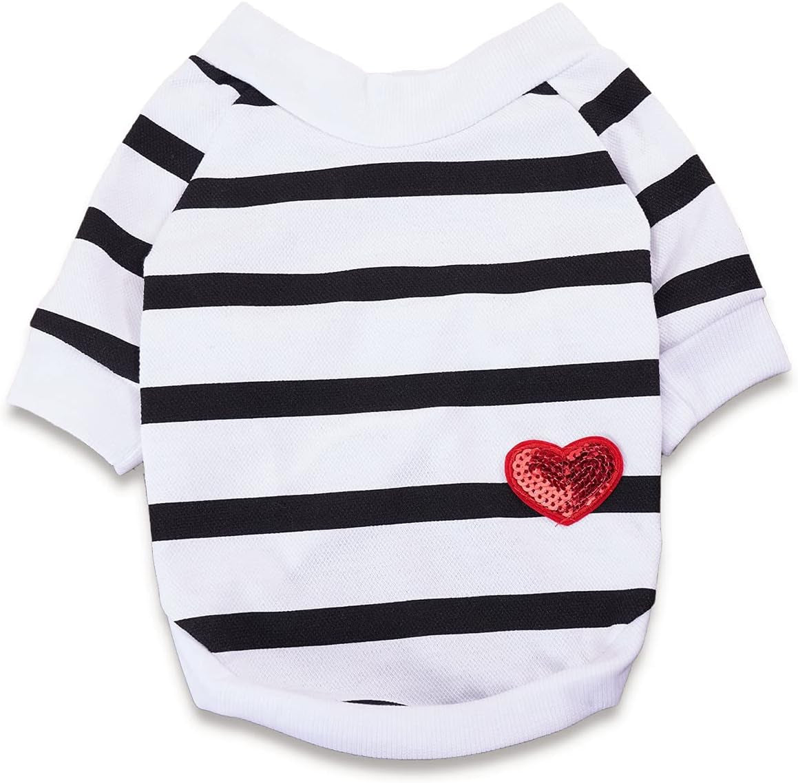 • Product Highlights: Classic striped style with sparkling heart decoration for your puppy/kitten in the summer, comfy and gentle fabric indeed. Your puppy will be the center of the crowd. Only at DroolingDog.