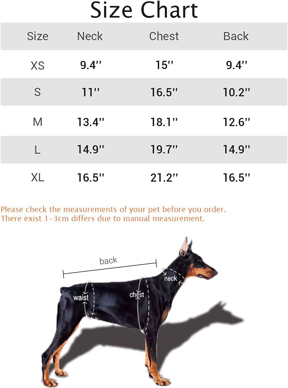 • Suggestions: a. Measuring your dog for a perfect fit. Sizing should allow room for 2 fingers to fit between the item and the pet. b. If any of the measurements are 'between' two sizes, choose the larger size. c. Your baby usually wears size S doesn't mean all size S will fit him/her.