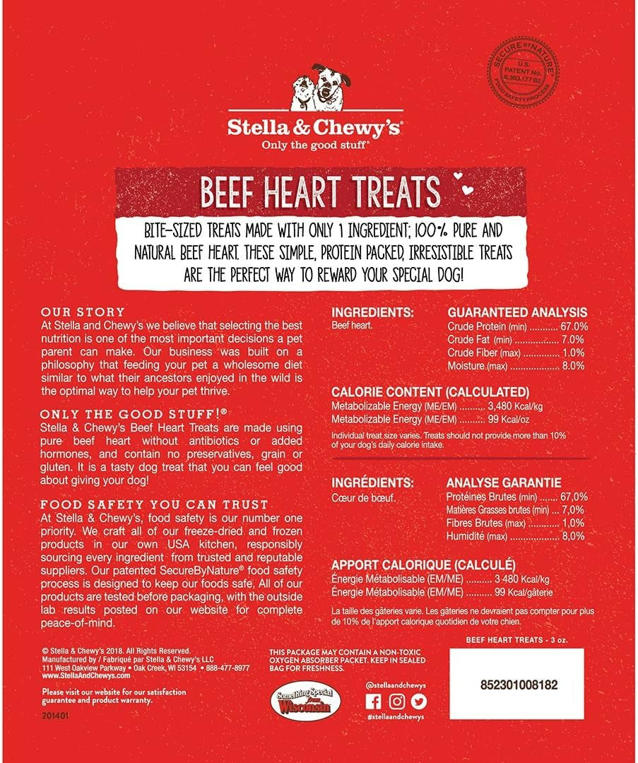 • Made in the USA with one simple ingredient: 100% pure freeze-dried raw beef heart.