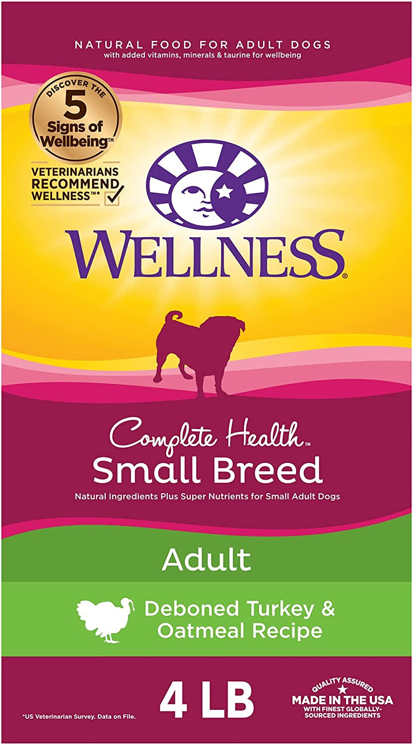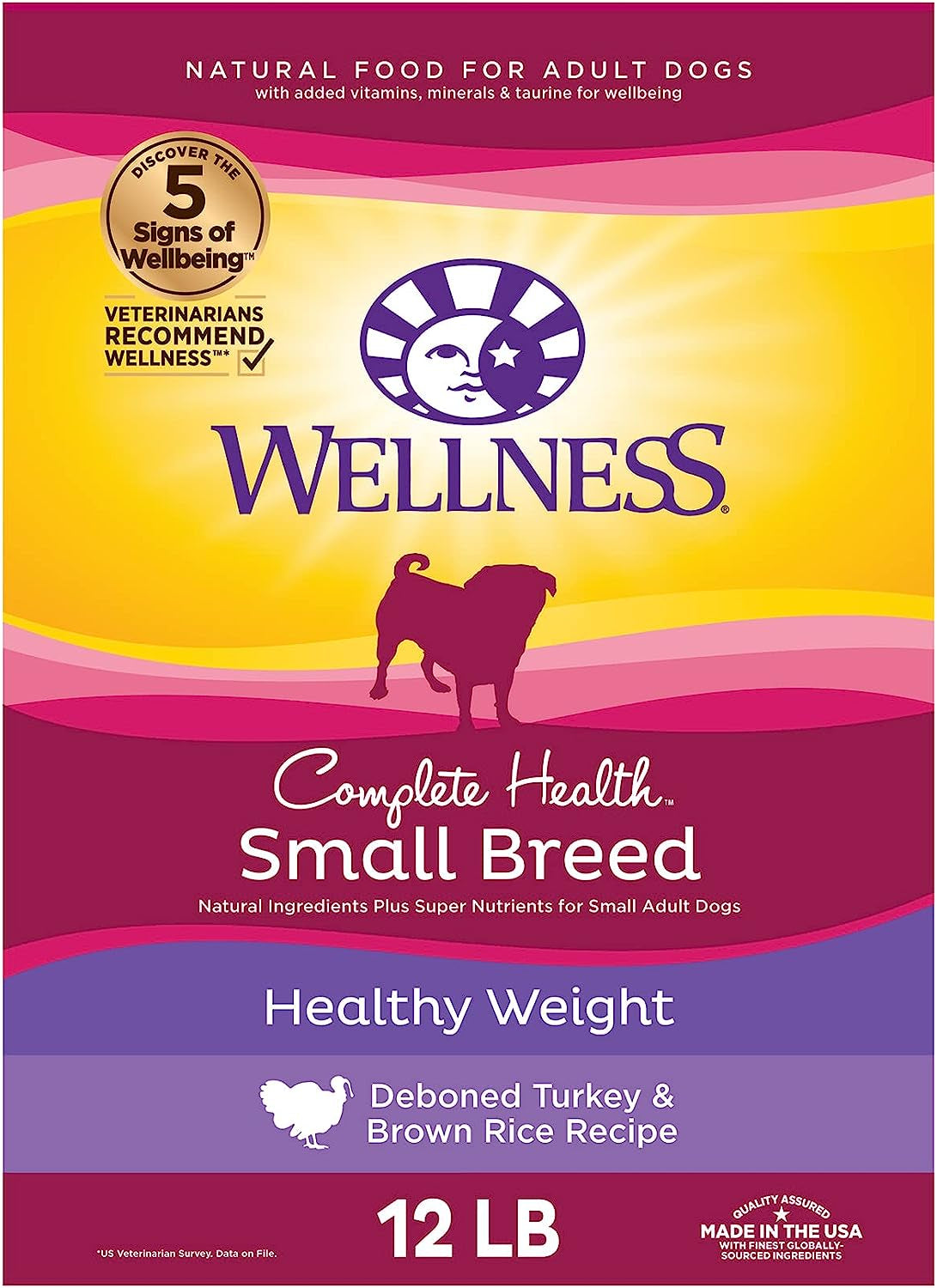 Wellness Complete Health Small Breed Dry Dog Food with Grains, Made in USA with Real Turkey and Natural Ingredients, for Dogs up to 25 Lbs, Healthy Weight, 12 Pound Bag