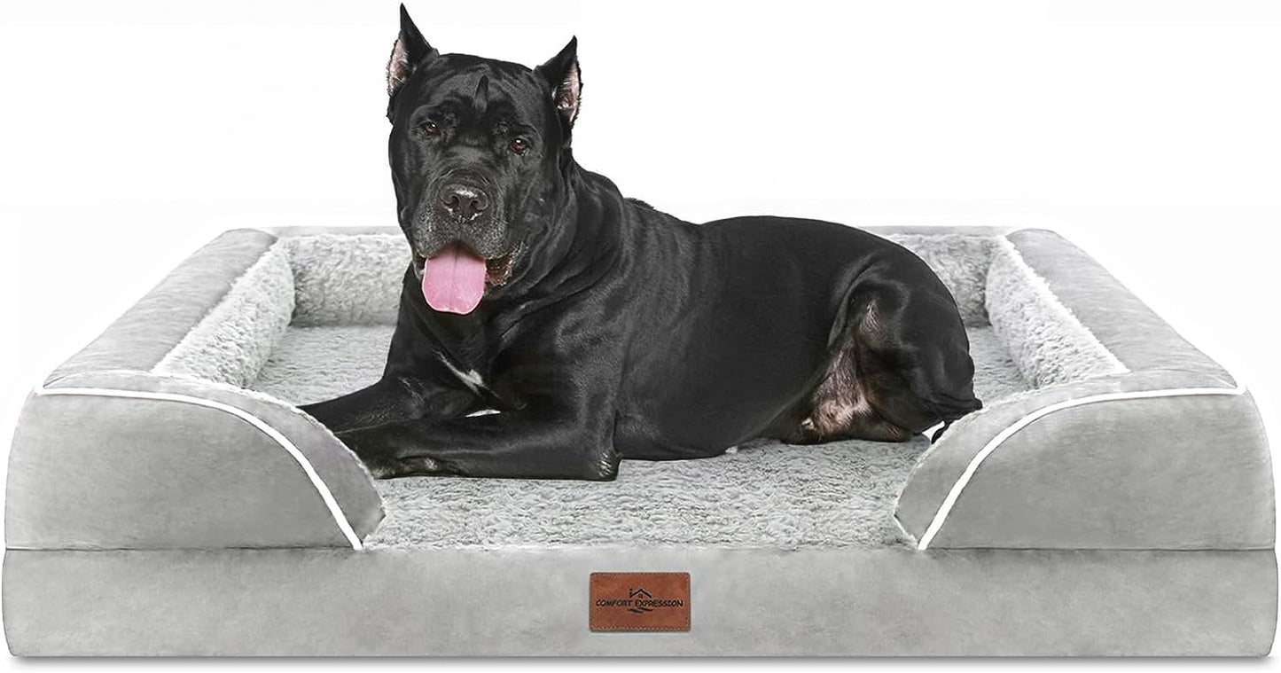 XXL Orthopedic Foam Dog Bed for Extra Large Dogs, Waterproof Orthopedic Dog Beds, Washable Dog Sofa Bed with Removable Cover & Non-Slip Bottom(Xx-Large,Grey White)