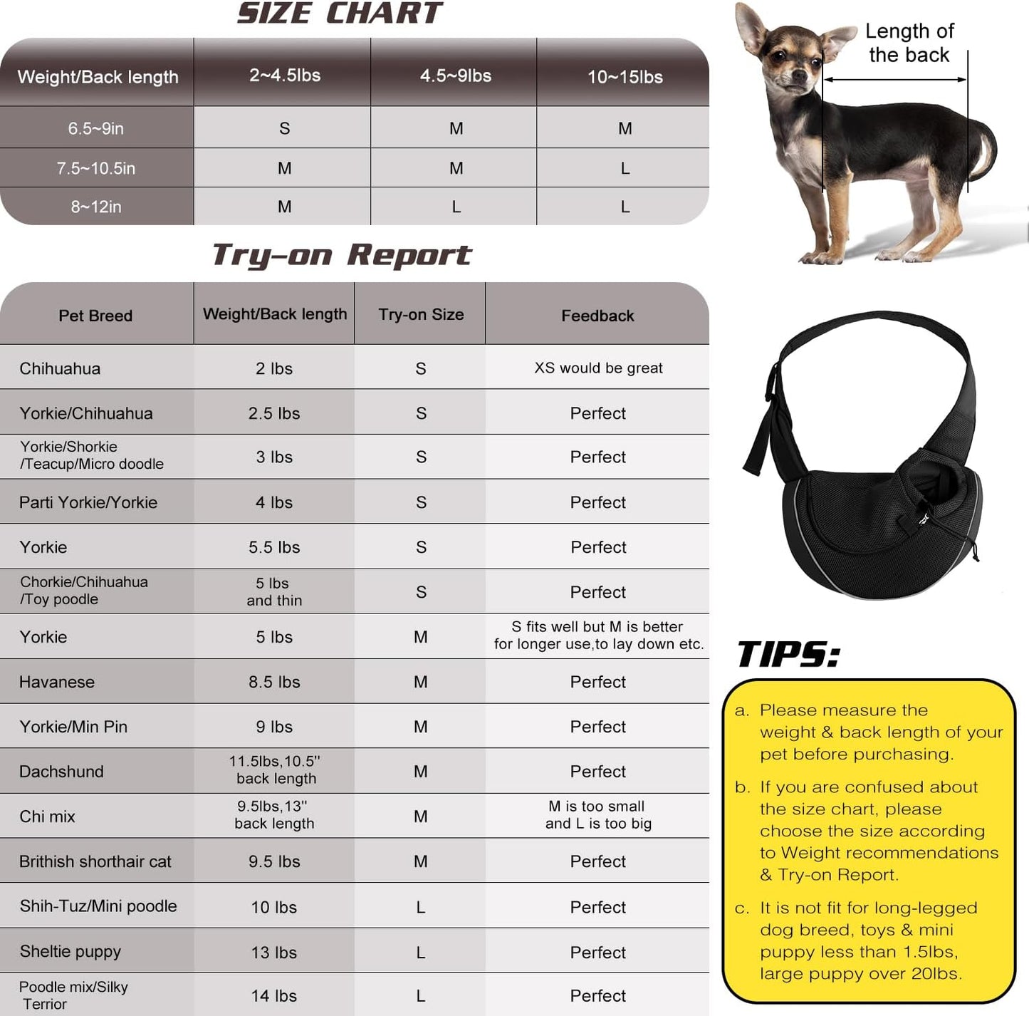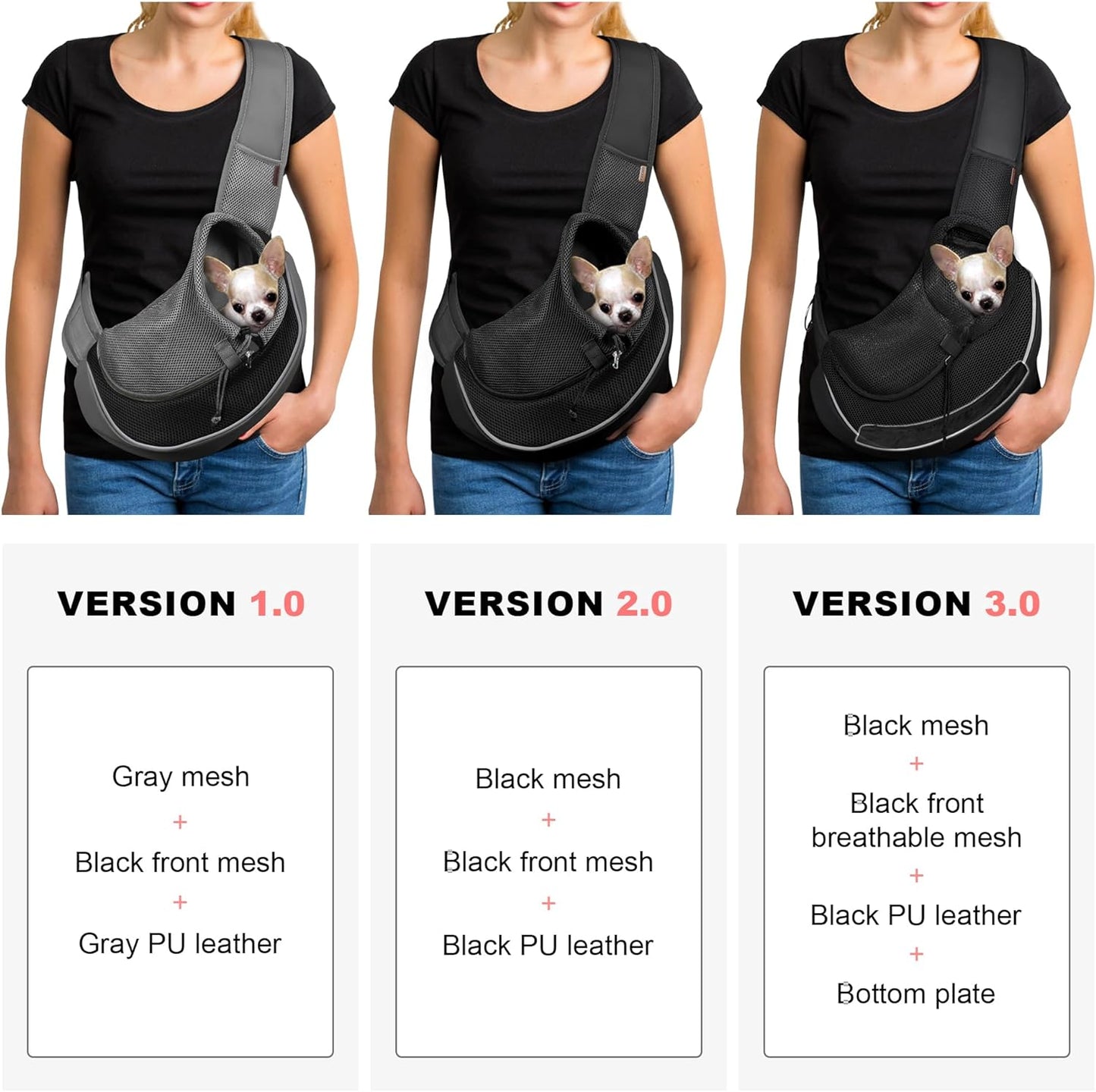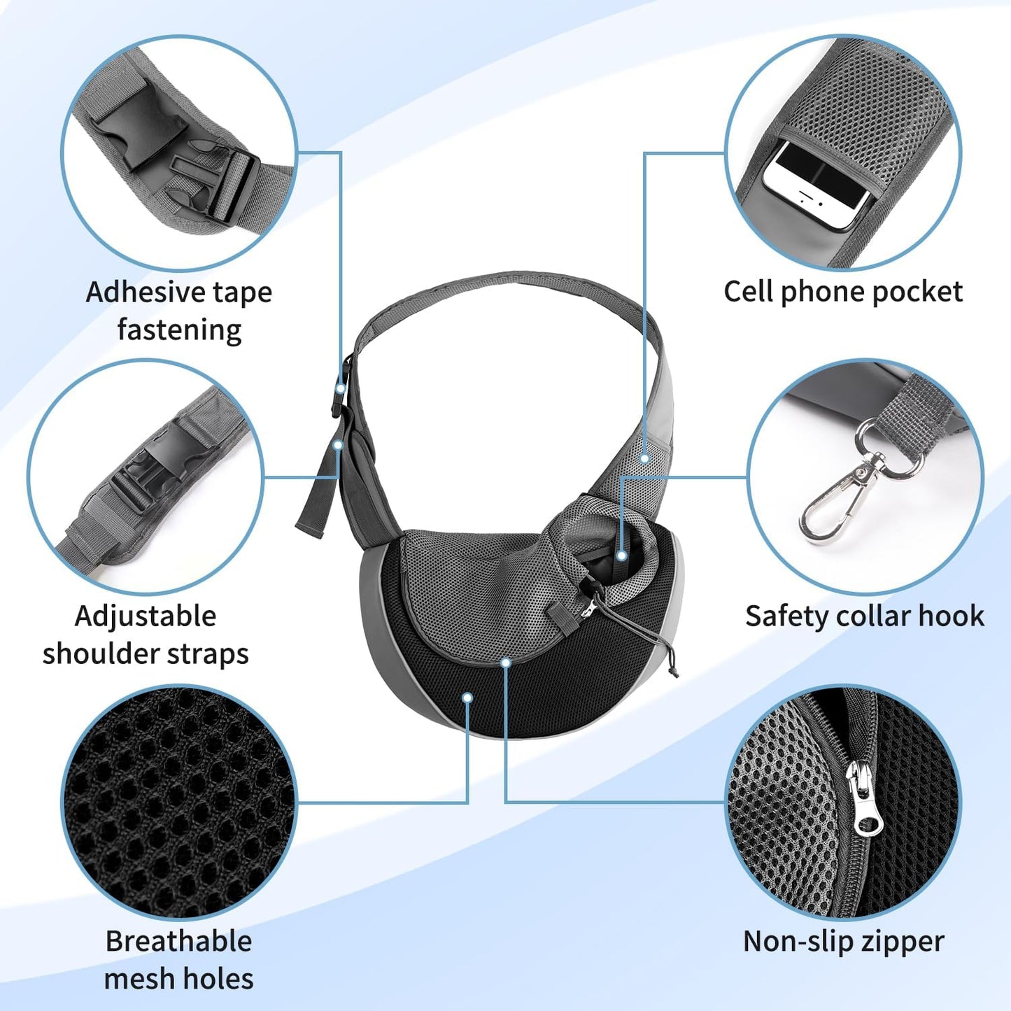A pet sling carrier made of comfortable and breathable mesh, suitable for spending your happy weekend with you wherever you go with your dog